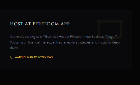 A media journey carved across the most influential networks in South India. Recognized for handling prime-time news, intense political debates, and high-energy celebrity talk shows with equal poise.